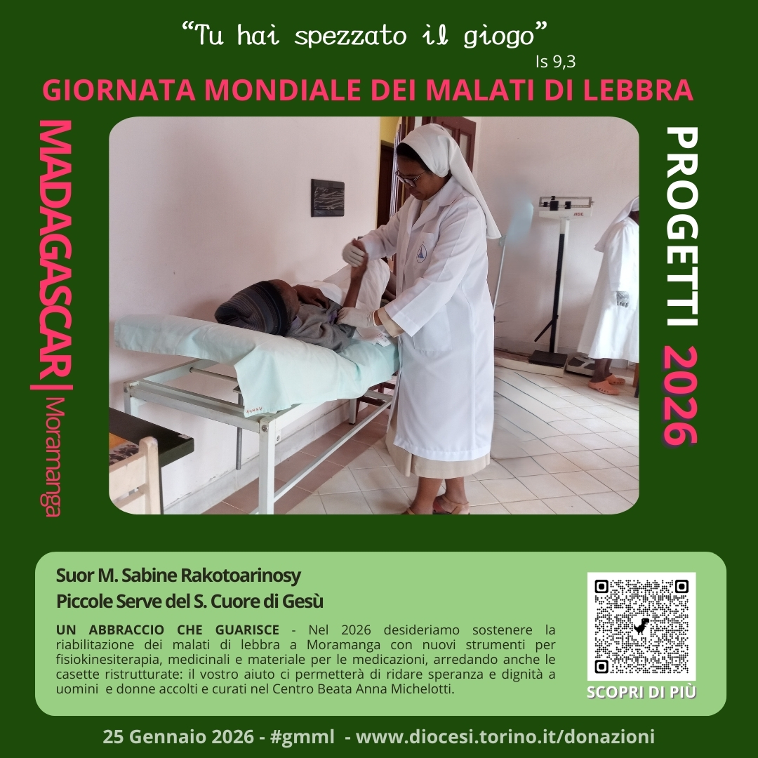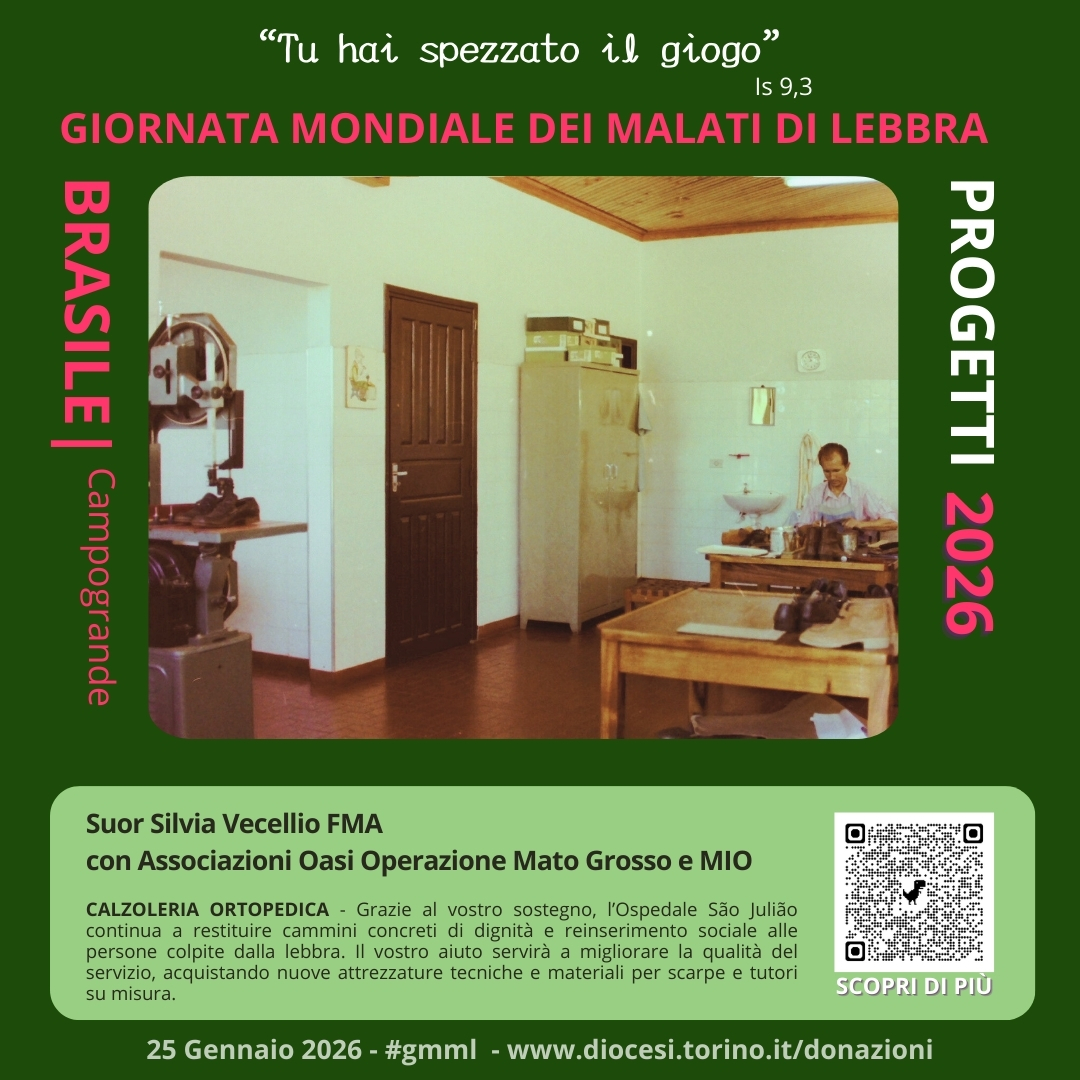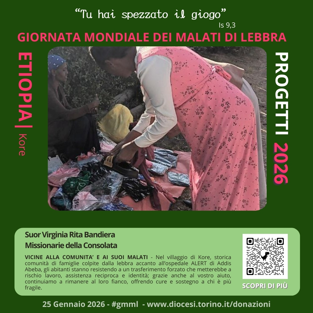 Grazie alla generosità di parrocchie, enti e privati, l’Arcidiocesi di Torino, attraverso lo Sportello Diocesano Collette e Donazioni, può sostenere ogni anno progetti di cura, prevenzione, riabilitazione e sostegno alle famiglie in Brasile, India, Madagascar, Etiopia, Colombia e in altri Paesi, come illustrato nel pieghevole GML 2026 (clicca qui per consultare la pagina PROGETTI).