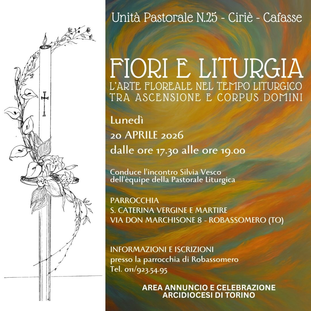 Per maggiori informazioni e richieste di corsi nelle Unità Pastorali contattare la segreteria della Pastorale Liturgica - tel. 011 5156408; e-mail liturgico@diocesi.to.it