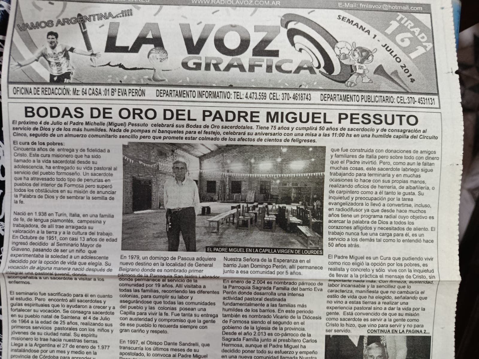 Lunedì 13 aprile la salma di don Michele Pessuto, sacerdote fidei donum della nostra diocesi a Formosa (Argentina) dal 1977 fino alla morte, avvenuta lo stesso giorno del 2018, è stata spostata dalla cattedrale di Formosa alla chiesa della Madonna di Lourdes.