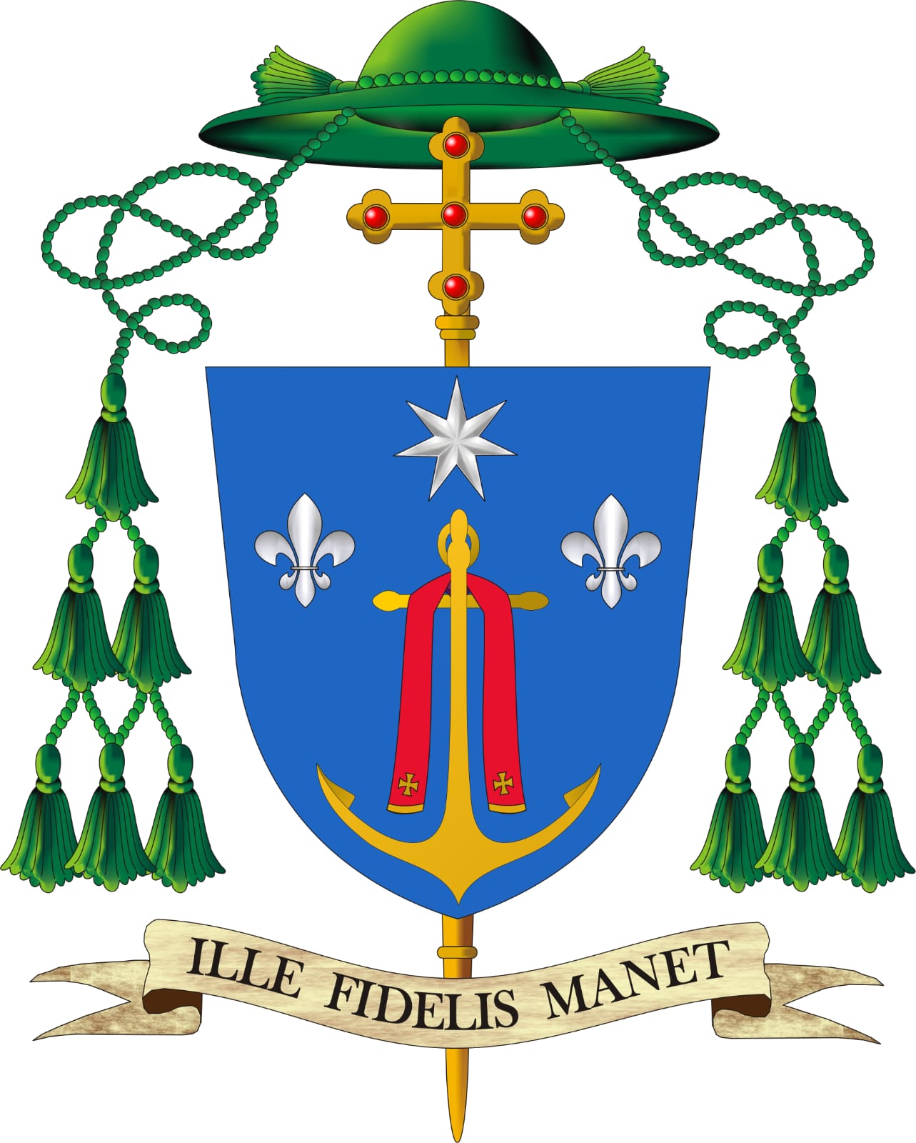 «D’azzurro, all’àncora d’oro, accollata da una stola sacerdotale di rosso, fimbriata e caricata di due crocette del secondo alle estremità, accompagnata da due gigli e sormontata da una stella d’argento».