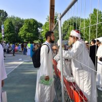 Fedeli musulmani riuniti in preghiera al Parco Dora per la festa di fine Ramadan, Torino 4 giugno 2019