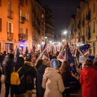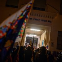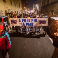 Marcia della Pace dal Sermig fino in Cattedrale con una tappa nella Piccola Casa della Divina Provvidenza-Cottolengo. Il corteo in particolare ha sostato davanti alla chiesa dedicata a San Pier Giorgio Frassati.