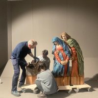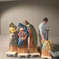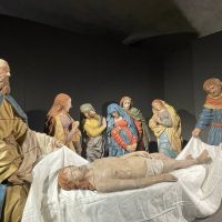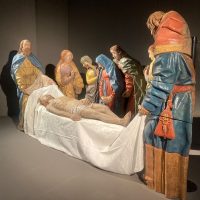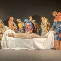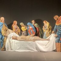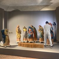 Per accogliere il gruppo scultoreo, il Museo ha realizzato un suggestivo allestimento scenografico che richiama il legame tra queste opere e le antiche rappresentazioni sacre della Passione: un allestimento pensato per restituire al pubblico il carattere originario di racconto visivo e partecipato della scena evangelica.