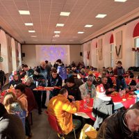 Per il secondo anno consecutivo, sabato 13 dicembre 2025, presso il salone San Domenico Savio di Valdocco, in via Maria Ausiliatrice a Torino, il vescovo ausiliare mons. Alessandro Giraudo è stato invitato assieme ad altri 100 ospiti al pranzo di Natale organizzato dalla Caritas Maria Ausiliatrice. Gli ospiti erano tutte le persone che il gruppo di volontari della Caritas Maria Ausiliatrice assiste durante l’anno e incontra ogni lunedì nel centro di Torino per un pasto caldo. In questa occasione speciale, sono stati protagonisti di un momento di festa e condivisione fraterna insieme al Vescovo ausiliare e agli stessi volontari. Il servizio è stato affidato ai novizi della Congregazione Salesiana, in formazione al Colle Don Bosco: venti giovani, accompagnati da sei salesiani, che con entusiasmo hanno curato il servizio ai tavoli e l’animazione musicale.
