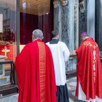 Giovedì 4 maggio 2023 nella Cattedrale di Torino mons. Roberto Repole, arcivescovo di Torino e vescovo di Susa e custode pontificio della Sacra Sindone, ha presieduto la S. Messa in occasione della festa liturgica della Sindone. Al termine della Messa l’Arcivescovo si è recato di fronte alla cappella dove la Sindone è custodita, per un momento di venerazione. Foto: MIhai Bursuc