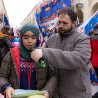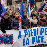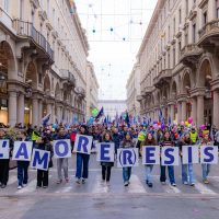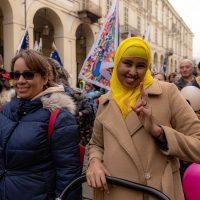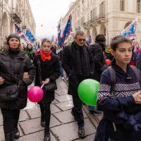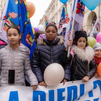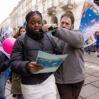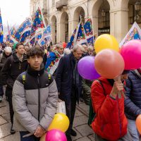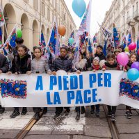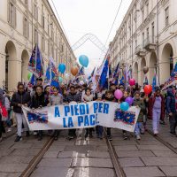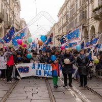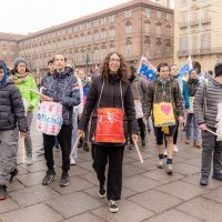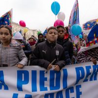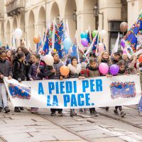 Nel pomeriggio di domenica 31 dicembre 2023 in piazza Vittorio Veneto a Torino si è tenuta la marcia «Passi di pace», organizzata dal Sermig – Arsenale della Pace: bambini, giovani e adulti hanno camminato insieme fino in piazza San Carlo per dire sì alla pace, a un futuro da costruire non a parole, ma con i fatti. Foto: Mihai Bursuc