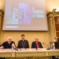 Presenti: mons. Roberto Repole, arcivescovo di Torino e custode pontificio della Sindone, il prof.Gianmaria Zaccone, direttore del Centro di Studi sulla Sindone, Giovanni Quaglia, presidente Fondazione CRT, il regista Omar Pesenti, il produttore Nicola Salvi e Luigi Tornari, presidente di Vativision.