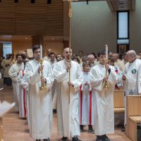 Il giovedì santo 6 aprile 2023 nella chiesa parrocchiale del Santo Volto in Torino, l’arcivescovo mons. Roberto Repole ha presieduto per la prima volta la S. Messa del Crisma. Con lui il vescovo ausiliare mons. Alessandro Giraudo, i vescovi emeriti, i presbiteri e i diaconi, insieme alle consacrate e ai consacrati e ai fedeli della diocesi. Come da tradizione, la Messa crismale è stata anche l’occasione per festeggiare i sacerdoti e i diaconi di cui ricorrevano i giubilei di ordinazione.